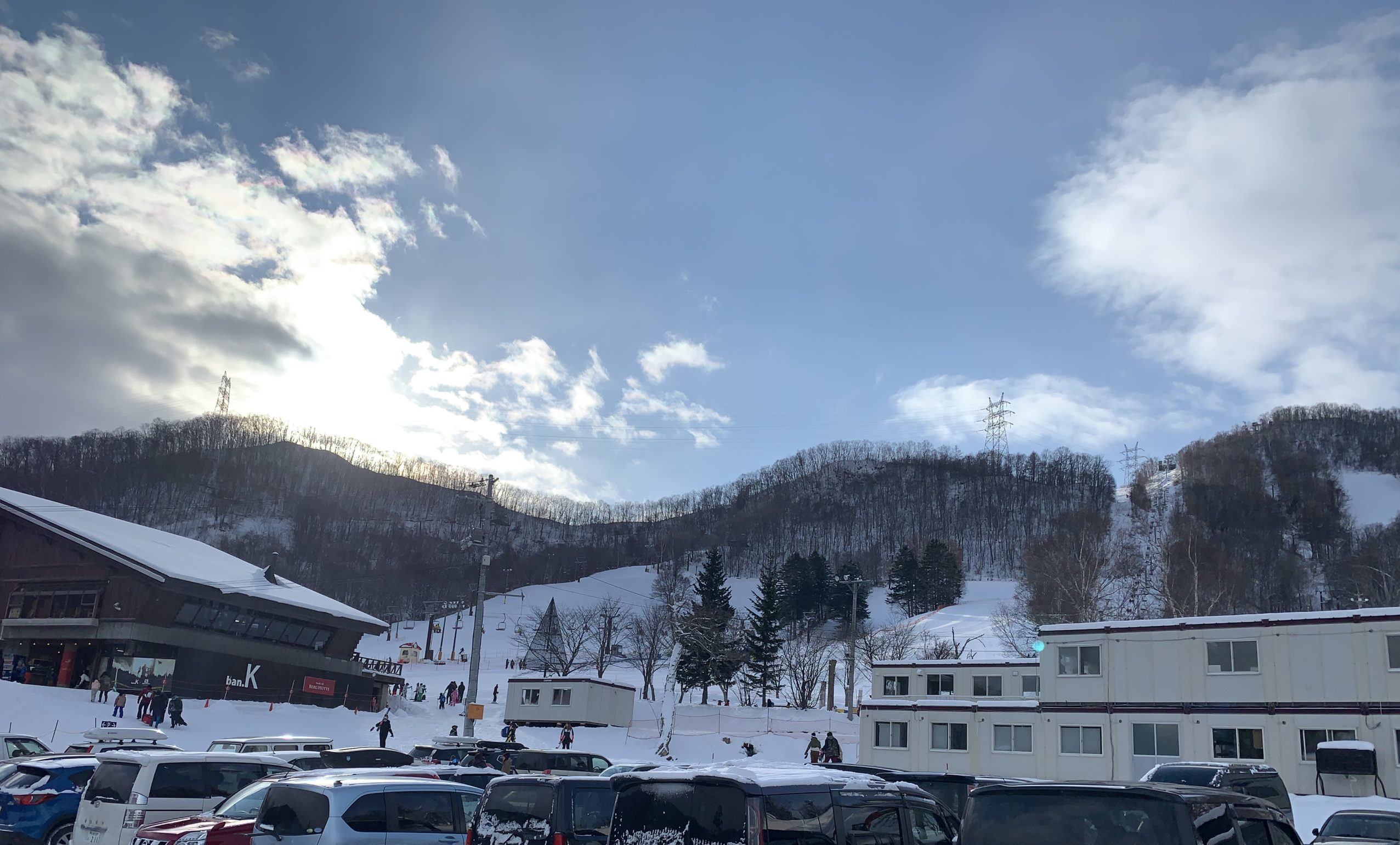 車から降り、ヒュッテに向かう坂で